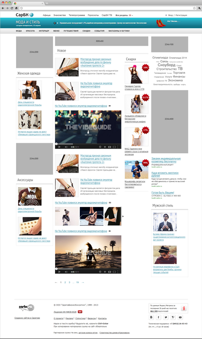 Мода и стиль - новый тематический раздел для информационного агентства СарБК. При разработке портала необходимо было, во-первых, сделать гламурный, глянцевый фасад раздела и, во-вторых, не удаляться от делового стиля информационного агентства в целом. Основная тематика раздела: модные показы, одежда, аксессуары, бытики, шоппинг в Саратове. Основная аудитория раздела - девушки и деловые люди, которым не безразличен стиль и мода.
