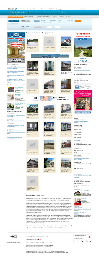 Основной задачей при переделке уже существующего раздела "Недвижимость на СарБК" - было добавить новый функционал на сайт: отображение объектов на карте, более детальное описание объектов, создание личных кабинетов для риелтеров и агентств недвижимости Саратова. При переделке раздела "Недвижимость" пришлось не просто переделывать дизайн сайта, а полностью менять программный код портала.